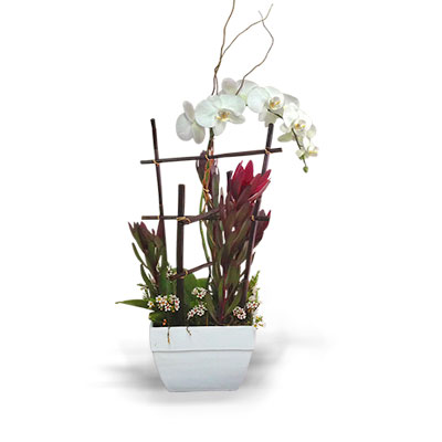 Elegante Orquídea Phalaenopsis, en base de cerámica.