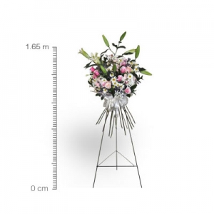 Arreglo floral en tripie. Este será un simbolo de solidaridad y pésame perfecto.