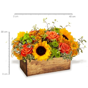 Dimensión promedio del arreglo: 30 cm de alto por 40 cm de ancho.