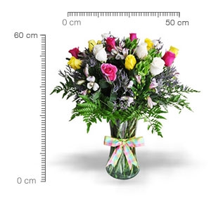 Dimensión promedio del arreglo: 60 cm de alto por 50 cm de ancho.
