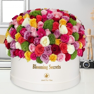 300 razones para decirle cuanto la quieres. Sorprendele con este majestuoso arreglo de 300 rosas en base tipo caja, disponible en color rojo o multicolor.