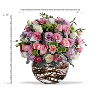 Dimensión promedio del arreglo: 50 cm de alto por 45 cm de ancho.