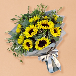 Marca la diferencia con nuetro bouquet premium de 10 girasoles,arreglado con finos follajes.