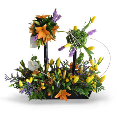 Alto diseño en Tulipanes acompañado de Lilis, Gerberas y Anturios.