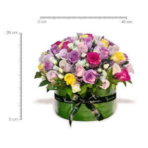 Dimensión promedio del arreglo: 35 cm de alto por 40 cm de ancho.