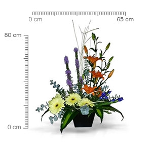 Dimensión promedio del arreglo: 80 cm de alto por 65 cm de ancho.