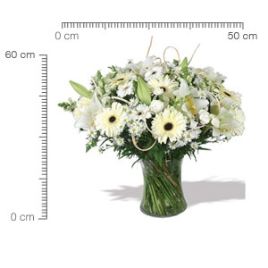 Dimensión promedio del arreglo: 60 cm de alto por 50 cm de ancho.