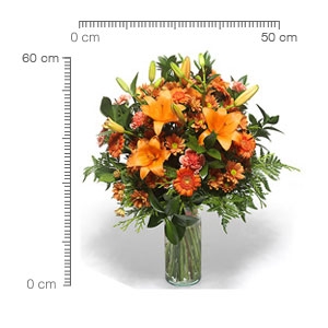Dimensión promedio del arreglo: 60 cm de alto por 50 cm de ancho.