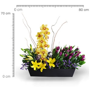 Elegante arreglo con Orquidea Cymbidium acompañanda de 20 Tulipanes.