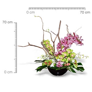 Elegante arreglo con dos tallos de orquídea Cymbidium en base de ceramica.
