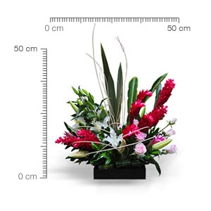 Exótico diseño de Hawaianas, Casablancas y Rosas en base.
