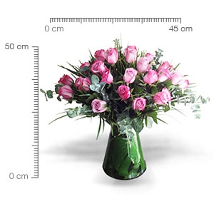 Elegante arreglo de 24 rosas en original florero de vidrio.