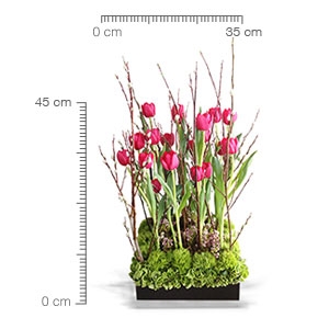 Dimensión promedio del arreglo: 45 cm de alto por 35 cm de ancho.