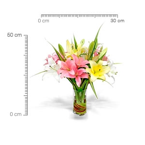 Dimensión promedio del arreglo: 50 cm de alto por 30 cm de ancho.