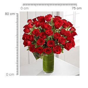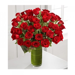 El destino los unió para éste momento increíble. Celebre su amor y sincera emoción con una exhibición de las rosas más increíbles. Un ramo precioso y exuberante de primera calidad, rosas de tallo largo, muy bien situado en un vaso cilíndrico de vidrio transparente, son la manera perfecta para brillar una luz en cada una de tus emociones.Incluye: 50 tallos de primera calidad de tallo largo, verdes variados y exótico follaje.