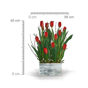 El Tulipán es un regalo como ningún otro! 15 tulipanes presentados en una base de madera estilo Shabby Chic será la manera perfecta de expresar su amor y afecto.