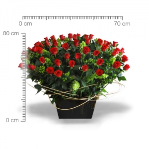 Dimensión promedio del arreglo: 80 cm de alto por 70 cm de ancho.
