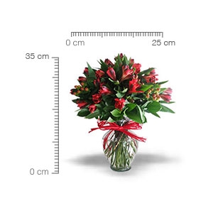 Si buscas solo un detalle esta es la opción perfecta para acercarte a esa persona. Alstromerias en florero de vidrio pequeño. Altura aproximada 35cm.