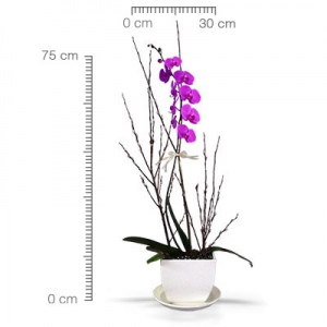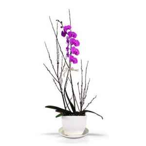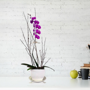Increible orquídea phalenopsis en tono morado - rosa, presentada en una original base.