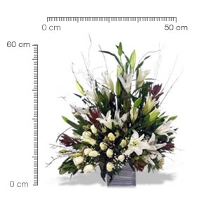 Dimensión promedio del arreglo: 60 cm de alto por 50 cm de ancho.