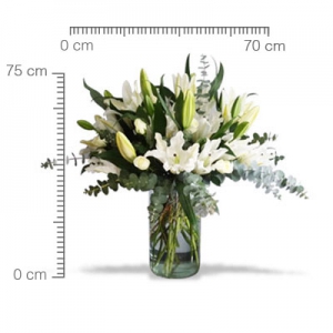 Dimensión promedio del arreglo: 75 cm de alto por 70 cm de ancho.