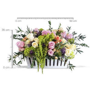 Dimensión promedio del arreglo: 35 cm de alto por 50 cm de ancho.